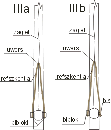 - refsejzingi - linki przechodzące przez remizki do wiązania żagla do bomu,